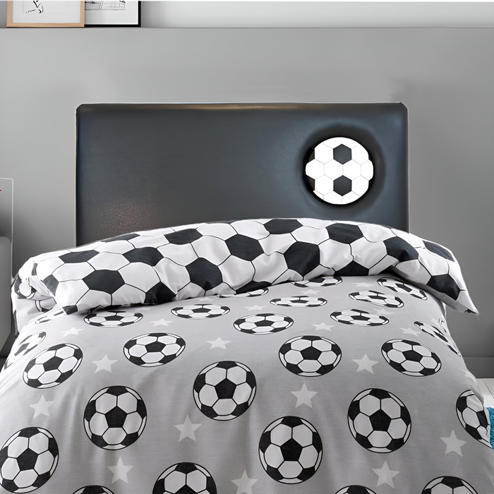 Children's Football Headboard! Featuring a modern black backboard with a classic padded football in the corner, it's the perfect way to show their love for the beautiful game.